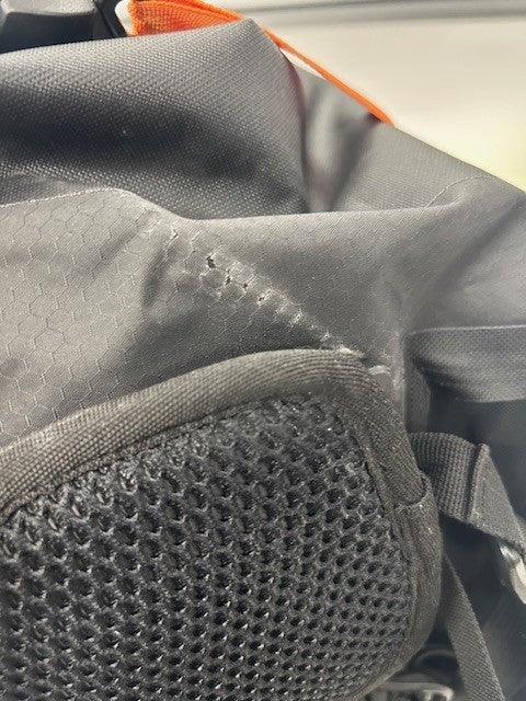 Bag used for 6-months and fabric started to wear/whiten where the ends are folded to close the bag. Bag is in very good condition, but we cannot guarantee the bag will be fully waterproof; hence the low price (RRP £210)
